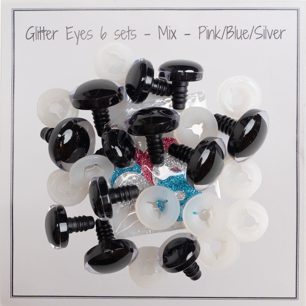 Total Quantity: 6 pairs of eyes (12 eyes + 12 washers + 12 glitter discs).