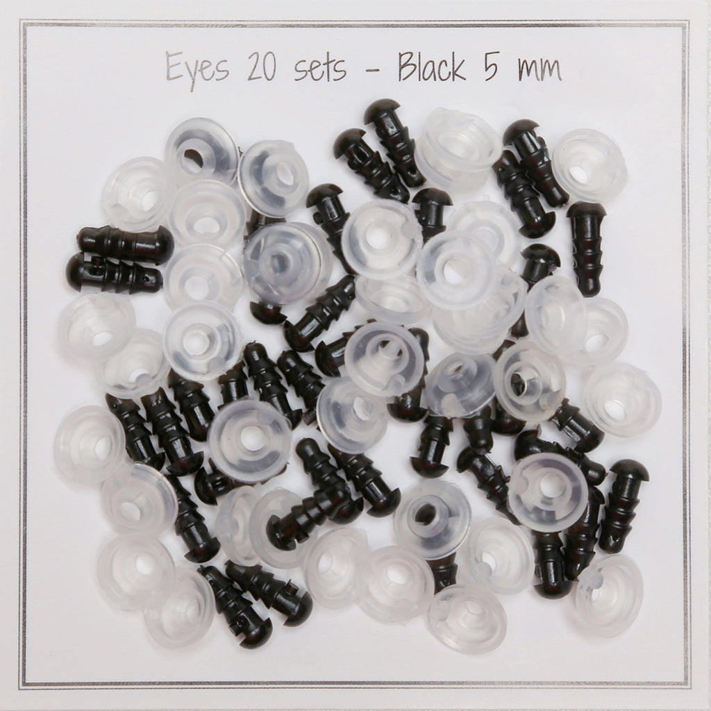 Rasti tinkamą akių dydį mažiems projektams gali būti sudėtinga, tačiau 5 mm juodos saugos akys dažnai yra puikus pasirinkimas. Šiek tiek didesnės nei miniatiūrinės 4 mm, jos suteikia pakankamai išraiškos, kad veideliai atrodytų gyvybingai, bet nesukurčia jų per daug.