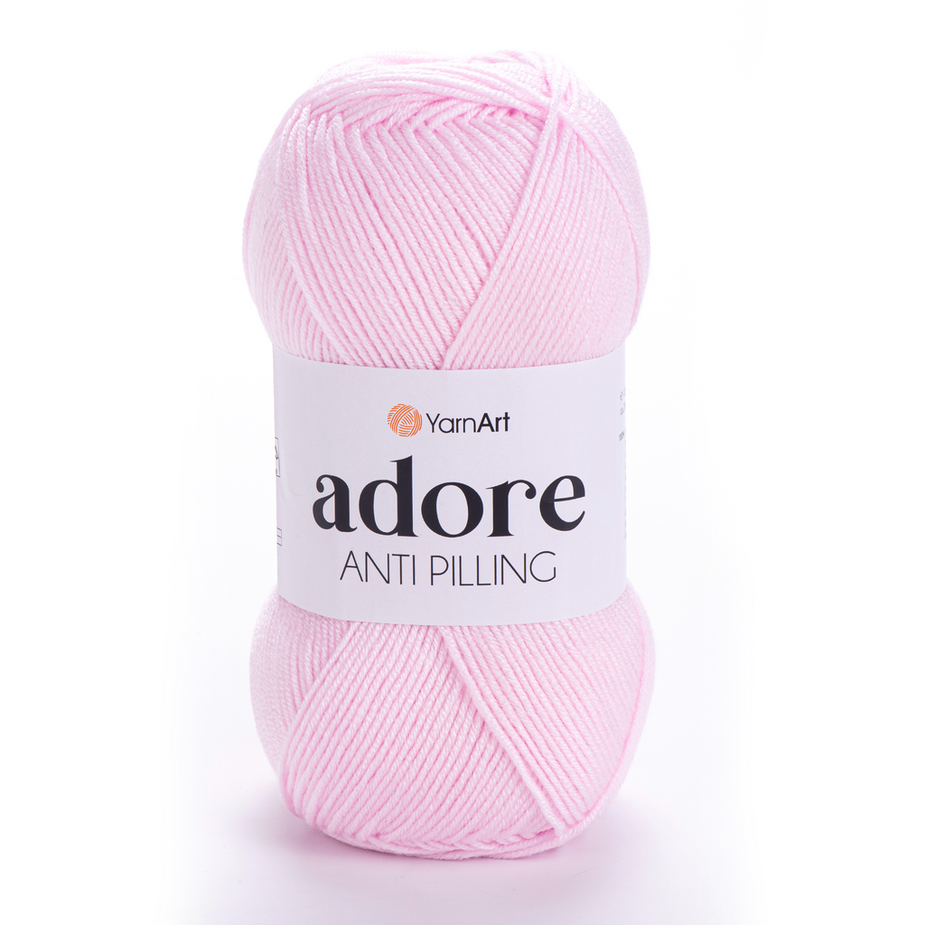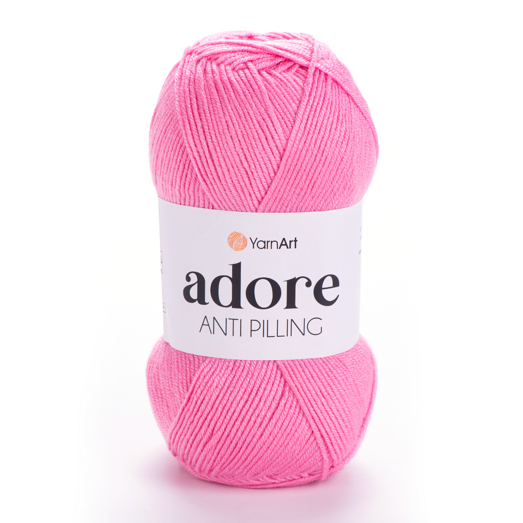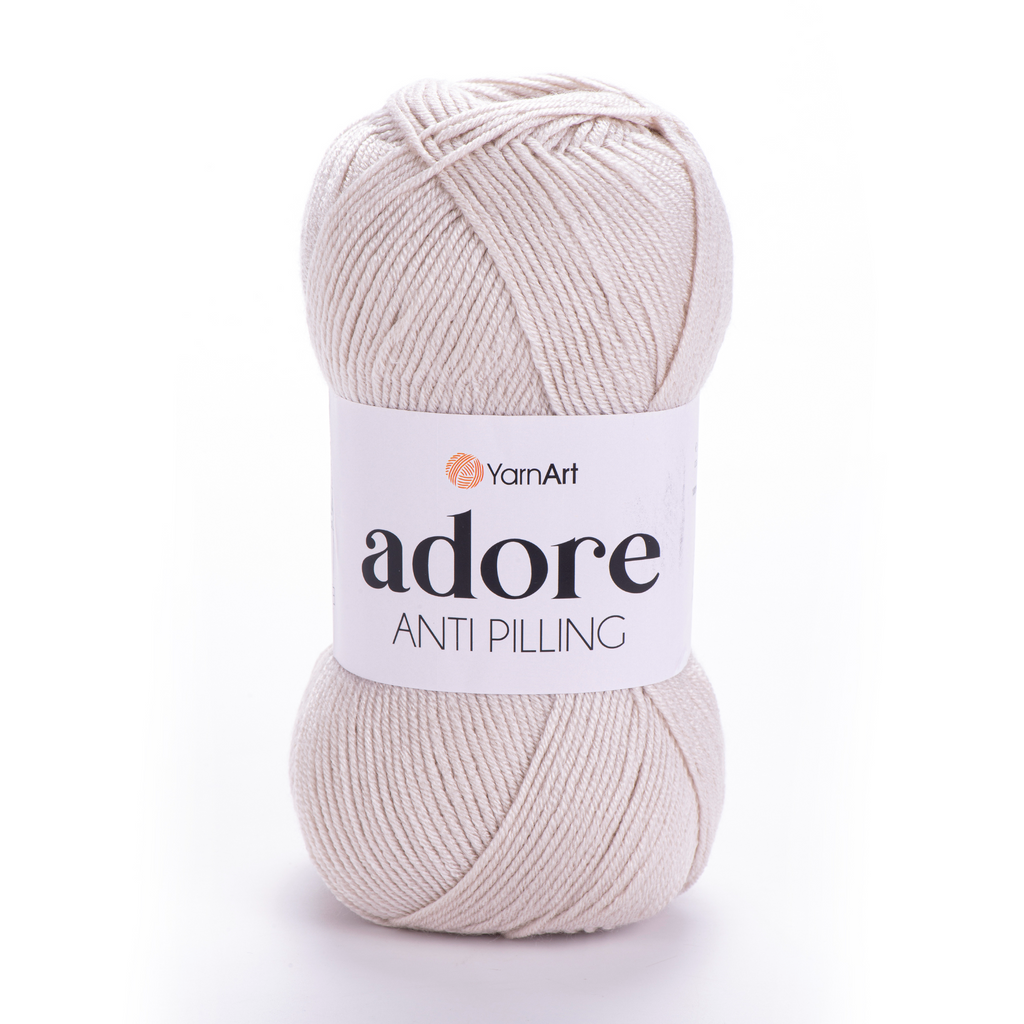 YarnArt Adore – tai aukštos kokybės siūlai, sukurti naudojant pažangią „Anti-Pilling“ technologiją. Tai reiškia, kad net ir intensyviai dėvimi ar dažnai skalbiami drabužiai „nesiburbuliuoja“ ir ilgai išlaiko savo pradinę išvaizdą. Siūlas yra vidutinio storio, itin minkštas ir turi subtilų, elegantišką žvilgesį, todėl puikiai tinka tiek vaikiškiems kraiteliams, tiek suaugusiųjų megztiniams.