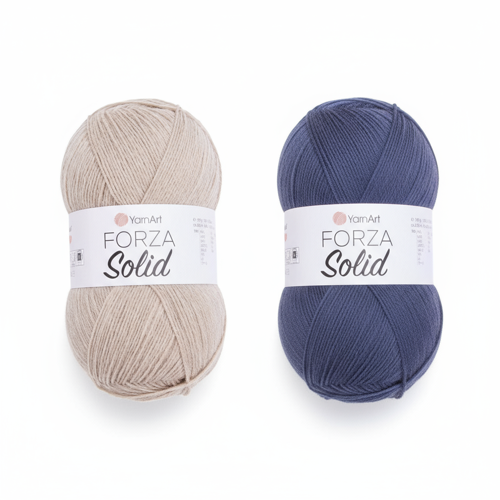 YarnArt Forza Solid – tai laiko patikrintas pasirinkimas, kai reikia tvirtumo ir šilumos. Šie siūlai kojinėms pasižymi klasikine sudėtimi: aukštos kokybės vilna suteikia natūralią šilumą ir laidumą orui, o poliamidas garantuoja, kad kojinės ar pirštinės bus atsparios trinčiai ir ilgai nesusidėvės. Vienspalviai tonai puikiai tinka sudėtingiems raštams, pynėms ar tiesiog elegantiškam minimalizmui.
