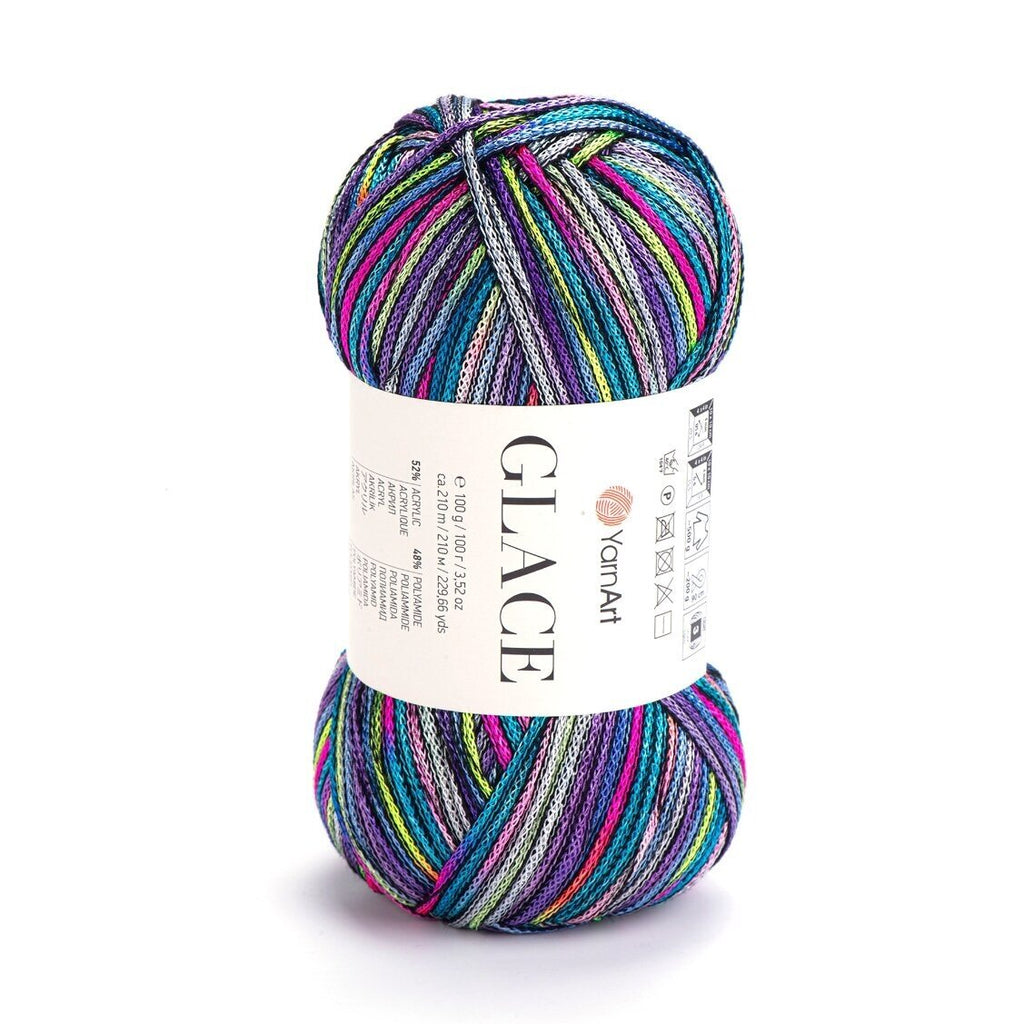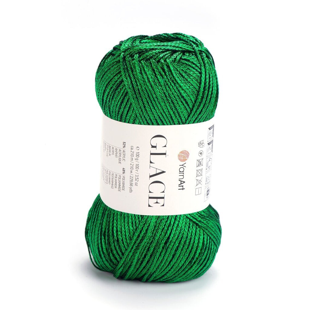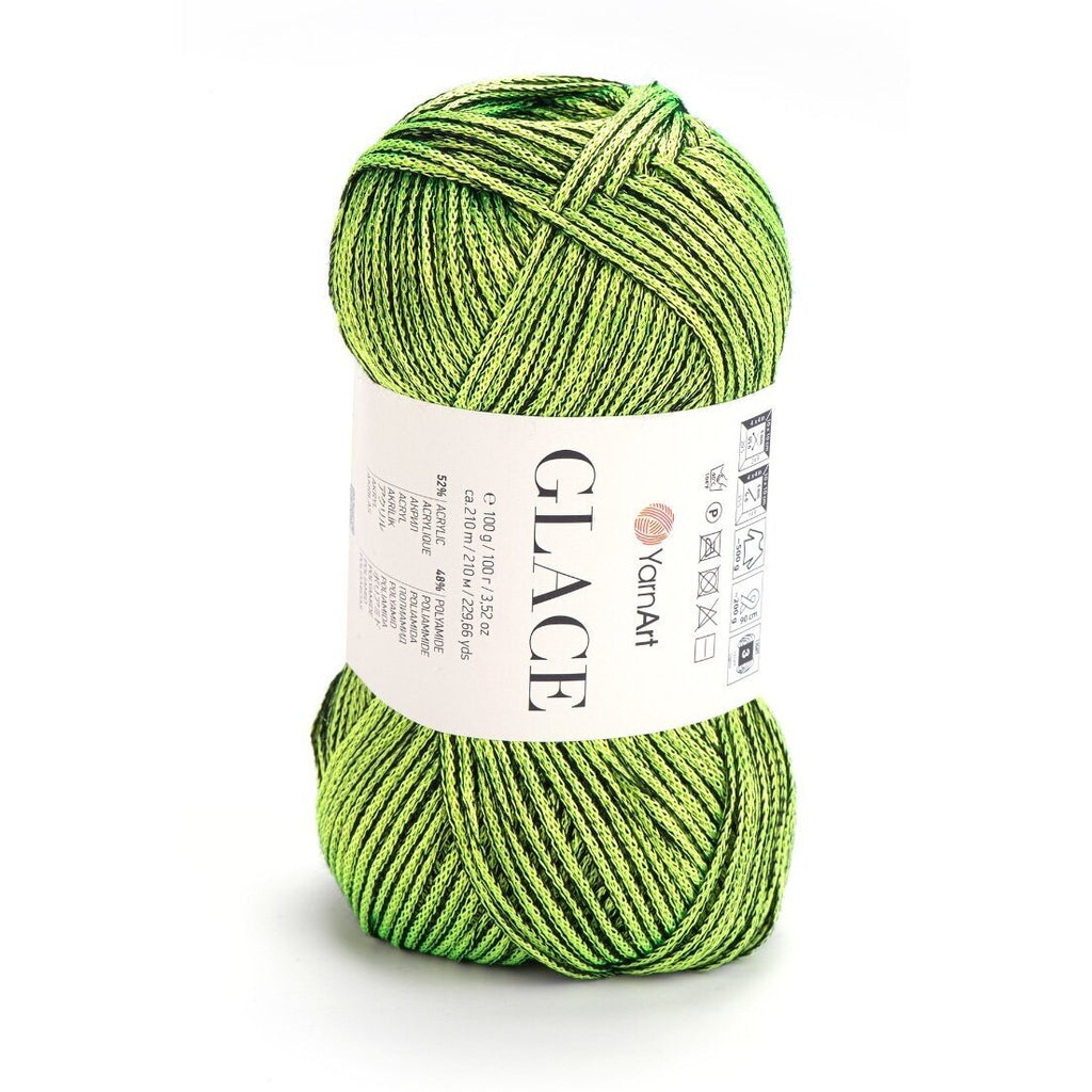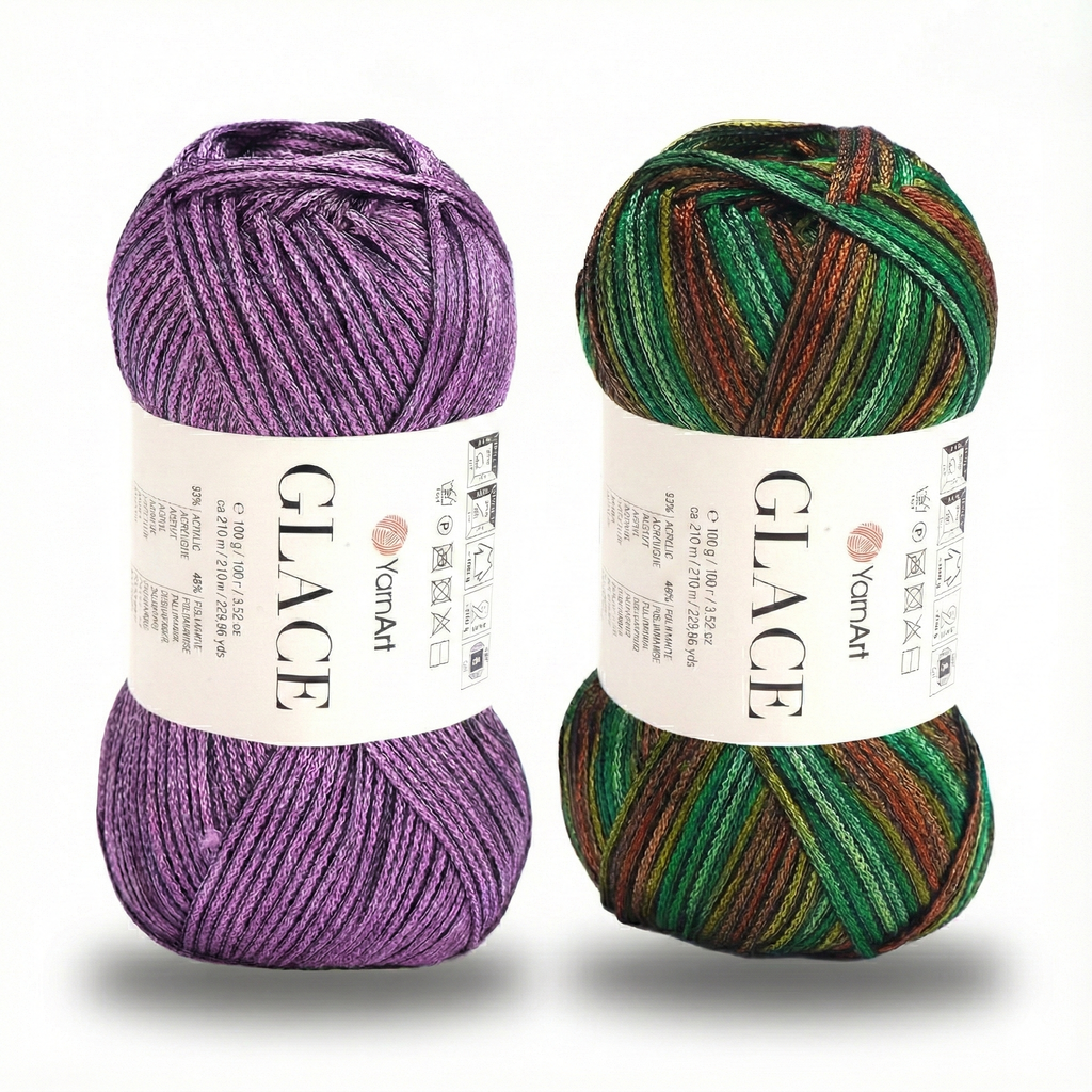 YarnArt Glace – tai siūlai, kurie suteikia mezginiams „šlapio“ efekto arba satino žvilgesį. Pavadinimas „Glace“ (glazūra) puikiai atspindi jų savybes: siūlas yra idealiai lygus, slidus ir atspindi šviesą. Akrilo ir poliamido derinys sukurtas taip, kad gaminys gražiai kristų, nesiglamžytų ir maloniai vėsintų odą, todėl tai nepakeičiamas pasirinkimas vasarinėms suknelėms, vakarinėms palaidinėms ar elegantiškiems aksesuarams.