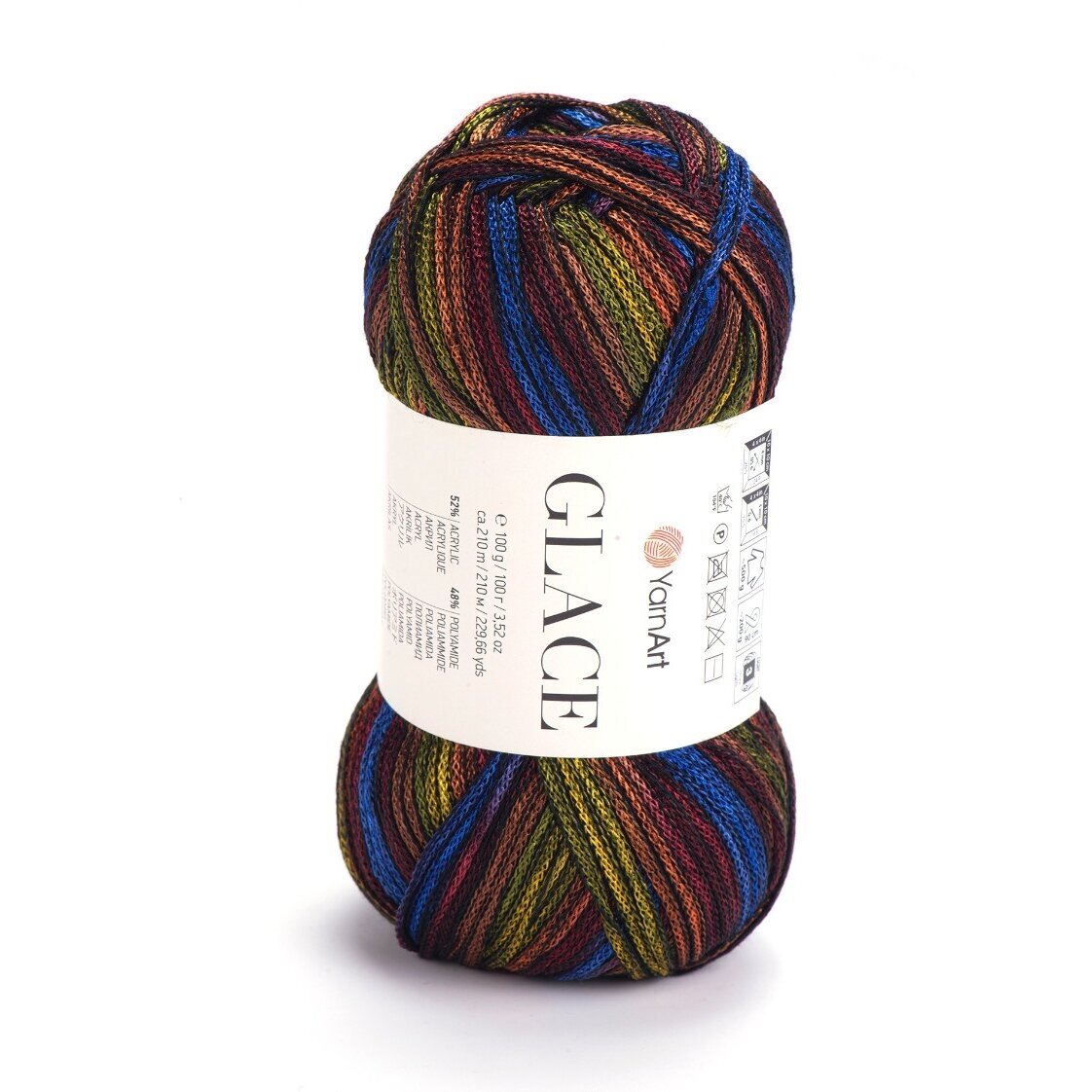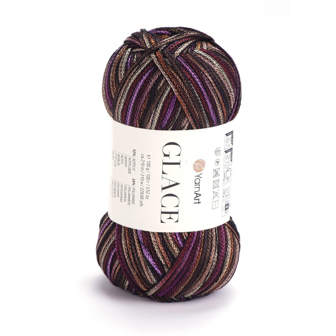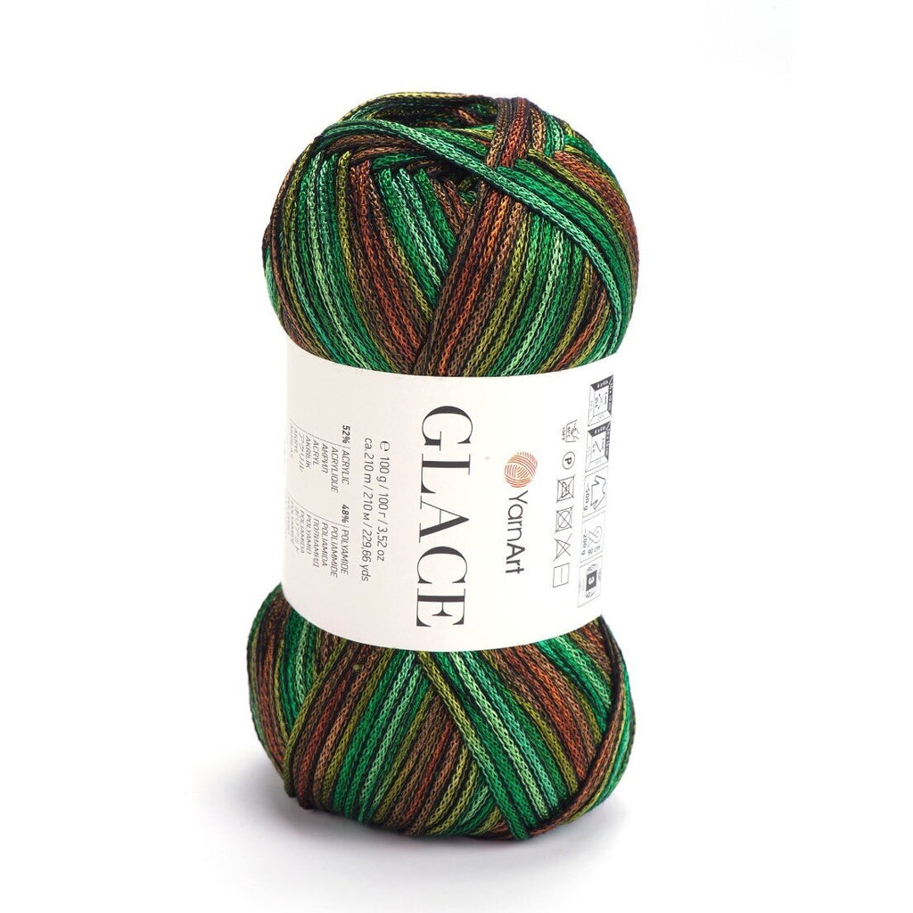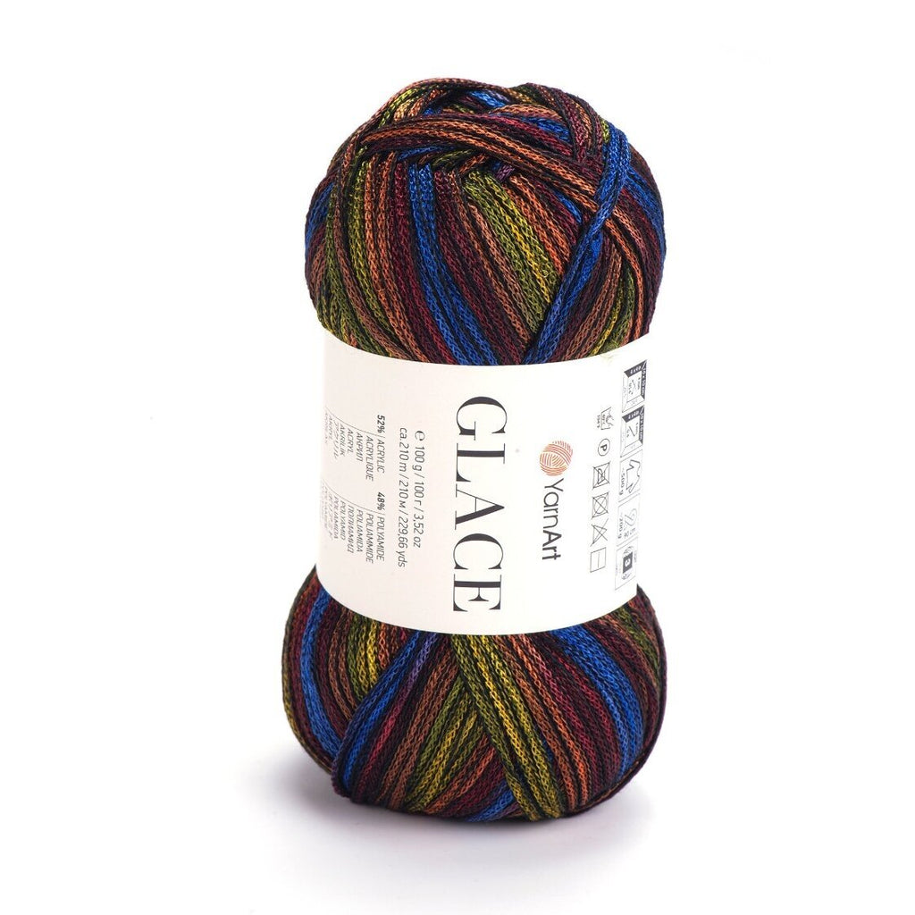 YarnArt Glace – tai siūlai, kurie suteikia mezginiams „šlapio“ efekto arba satino žvilgesį. Pavadinimas „Glace“ (glazūra) puikiai atspindi jų savybes: siūlas yra idealiai lygus, slidus ir atspindi šviesą. Akrilo ir poliamido derinys sukurtas taip, kad gaminys gražiai kristų, nesiglamžytų ir maloniai vėsintų odą, todėl tai nepakeičiamas pasirinkimas vasarinėms suknelėms, vakarinėms palaidinėms ar elegantiškiems aksesuarams.