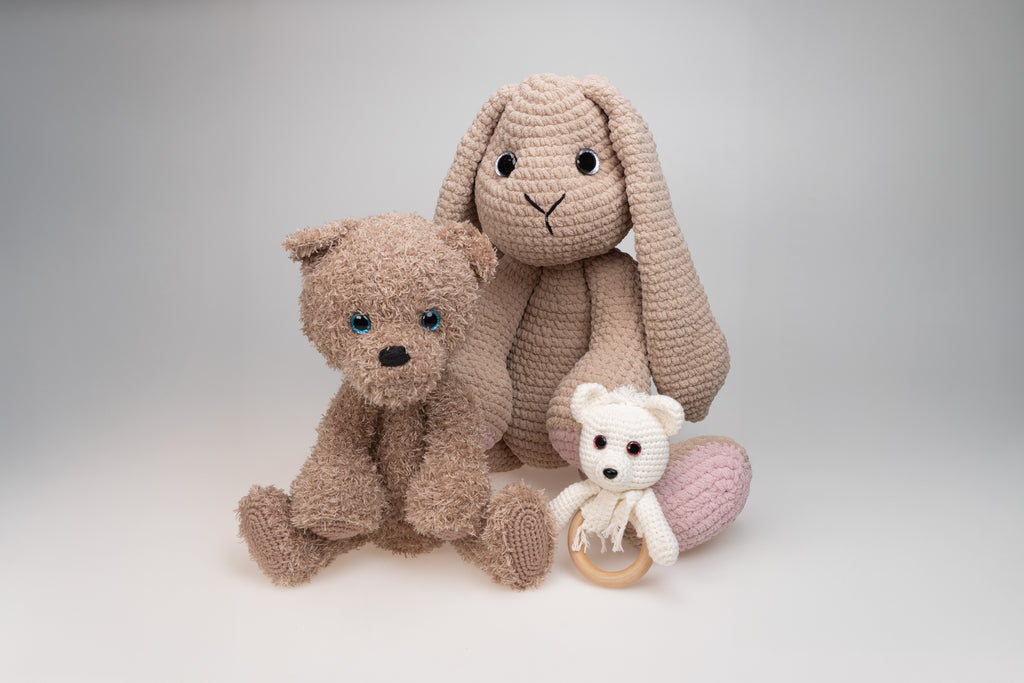 Drošs stiprinājums: Dzija dabiski stiepjas un laika gaitā atslābst. Lai nodrošinātu, ka jūsu pašu rokām darinātā rotaļlieta atbilst tādiem pašiem drošības standartiem kā veikalā iegādātās preces, ir ļoti svarīgs drošs stiprināšanas process.