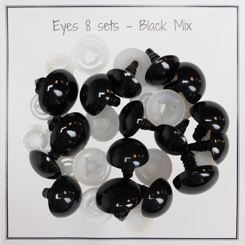 Black Safety Eyes – 8 Pairs (20 mm, 22 mm, 24 mm)